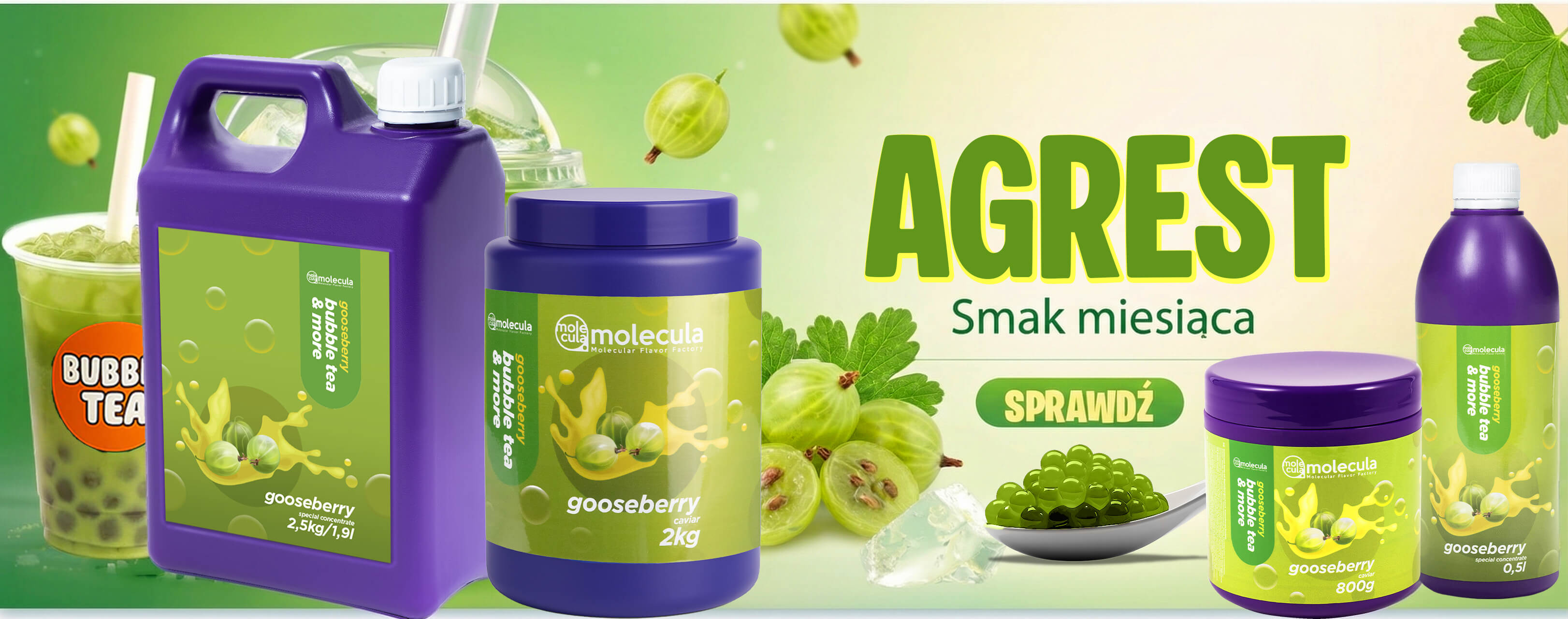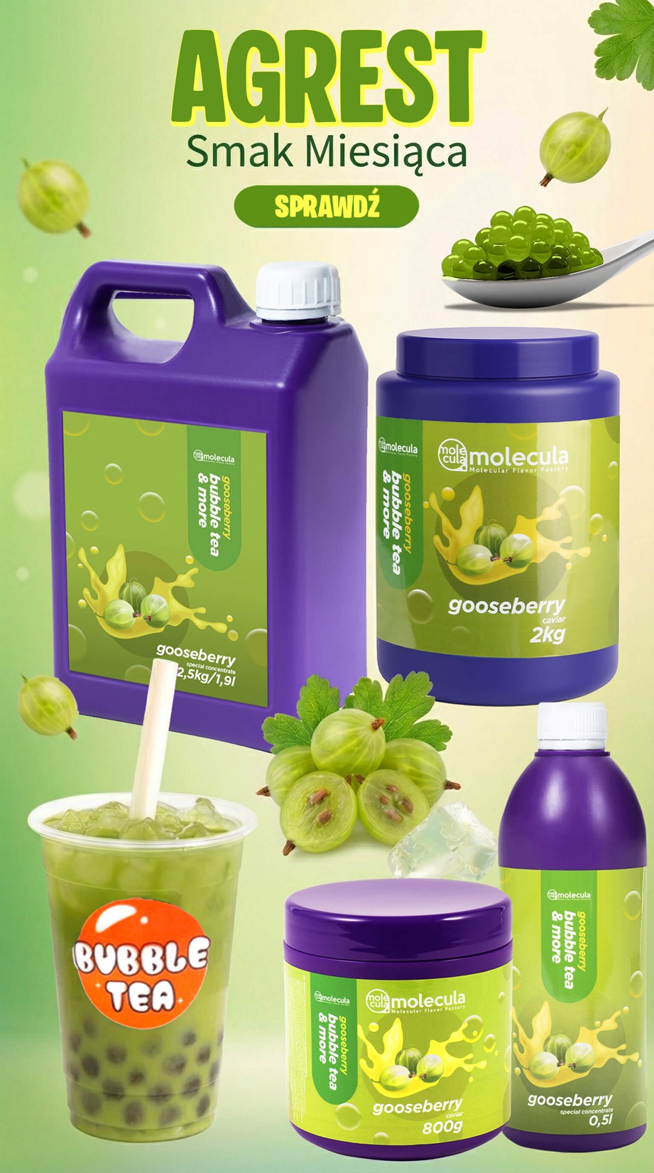 Producent MoleculaKULKI do BUBBLE TEA - AGREST - 0,8kg - MOLEKULARNY KAWIOR - POPPING BOBA