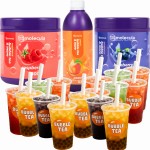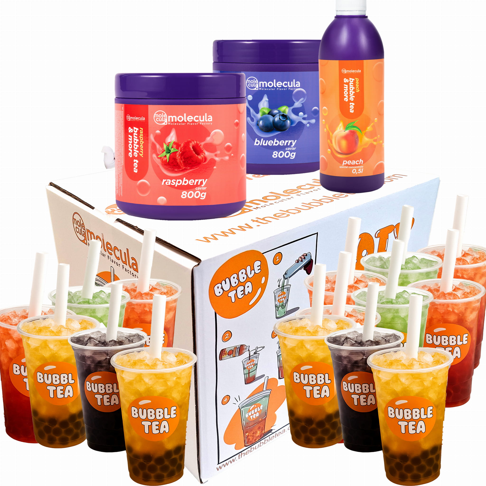 Zestaw Bubble Tea - kuleczki jagoda i malina, syrop brzoskwinia, kubki i słomki